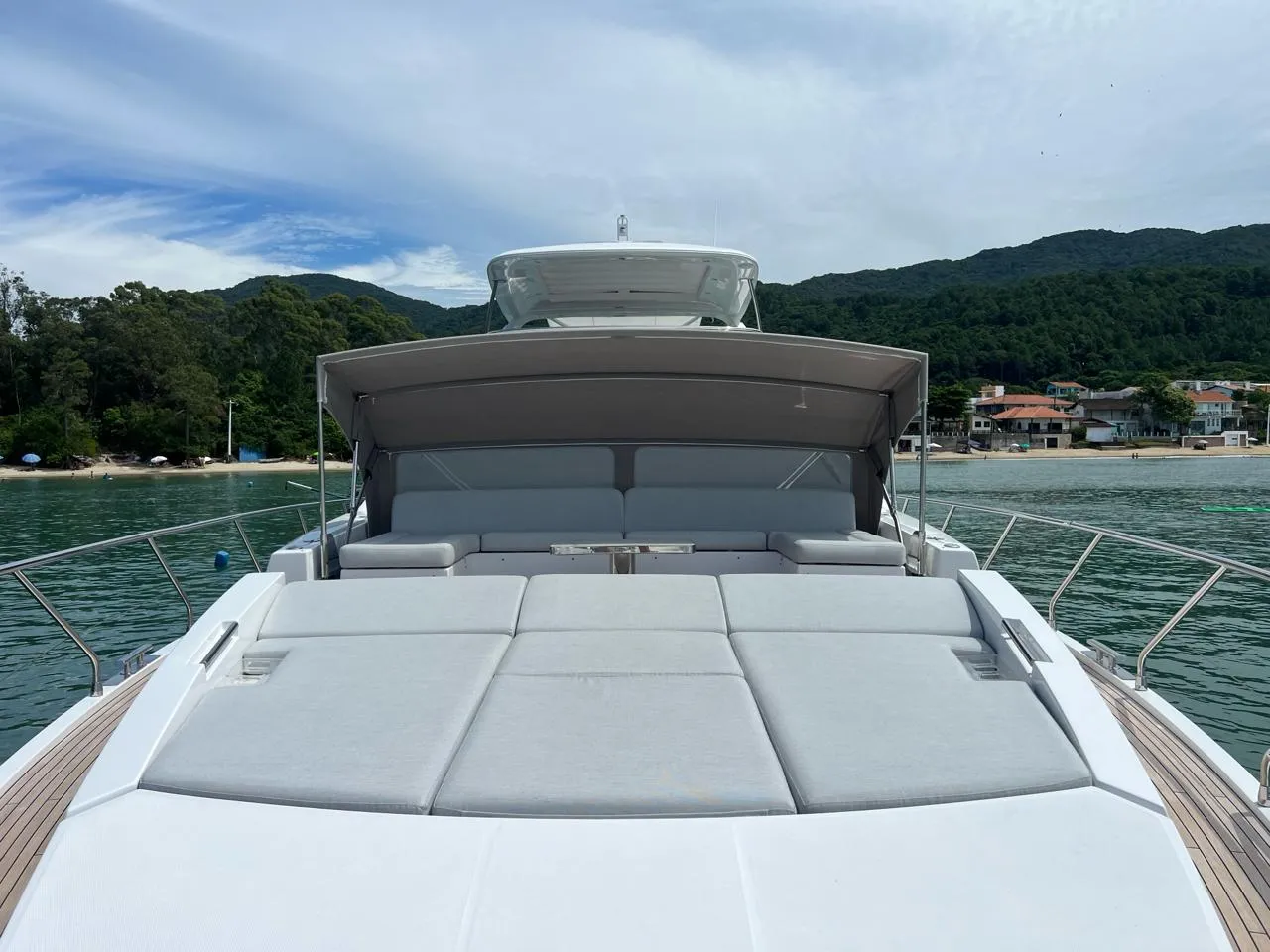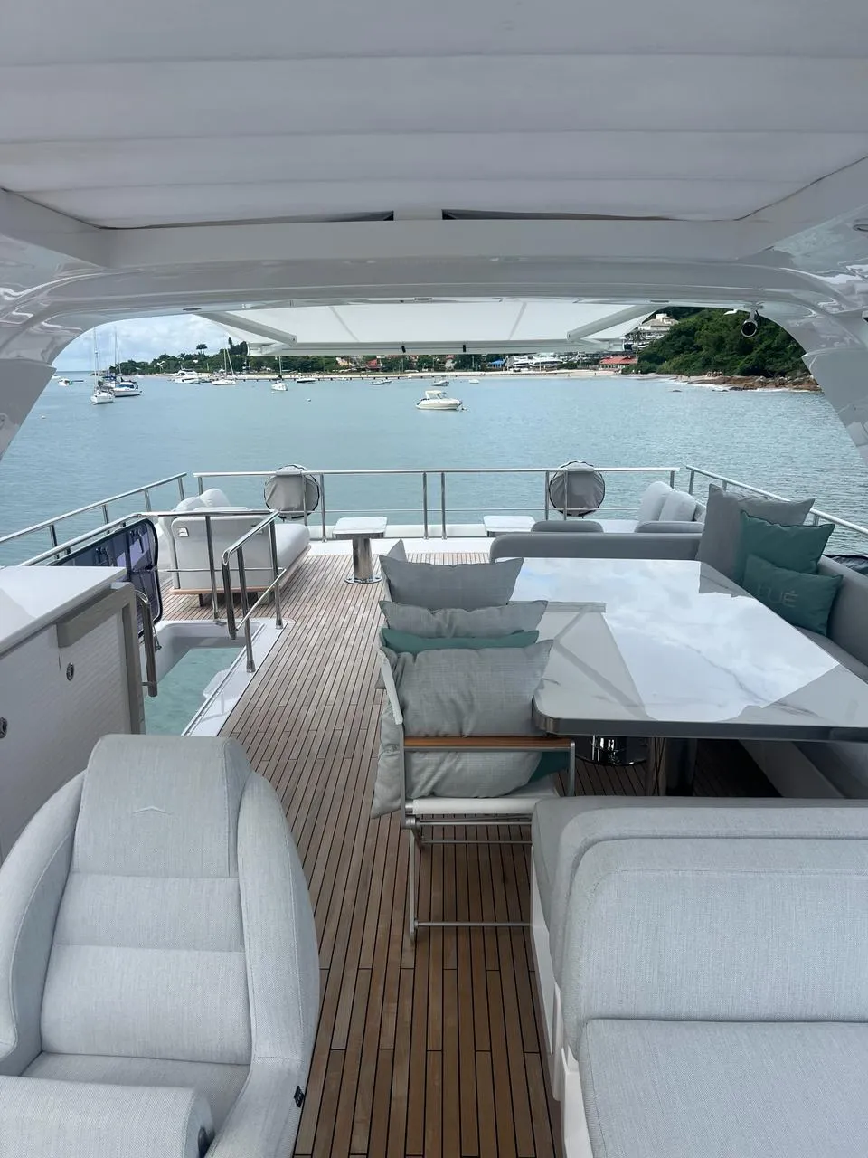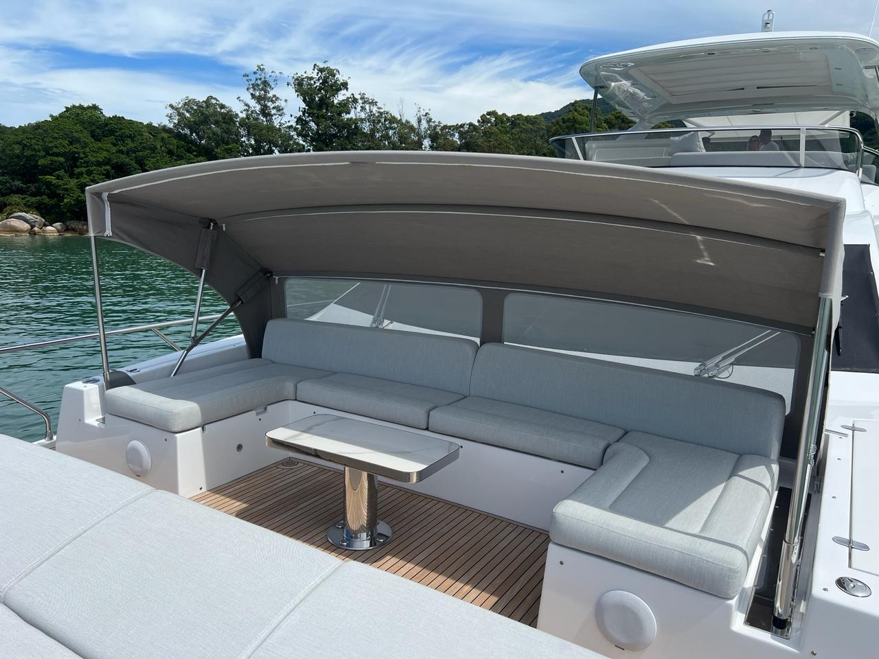 Flybridge amplo: perfeito para momentos de lazer ao ar livre, com espaço para convivência e relaxamento.