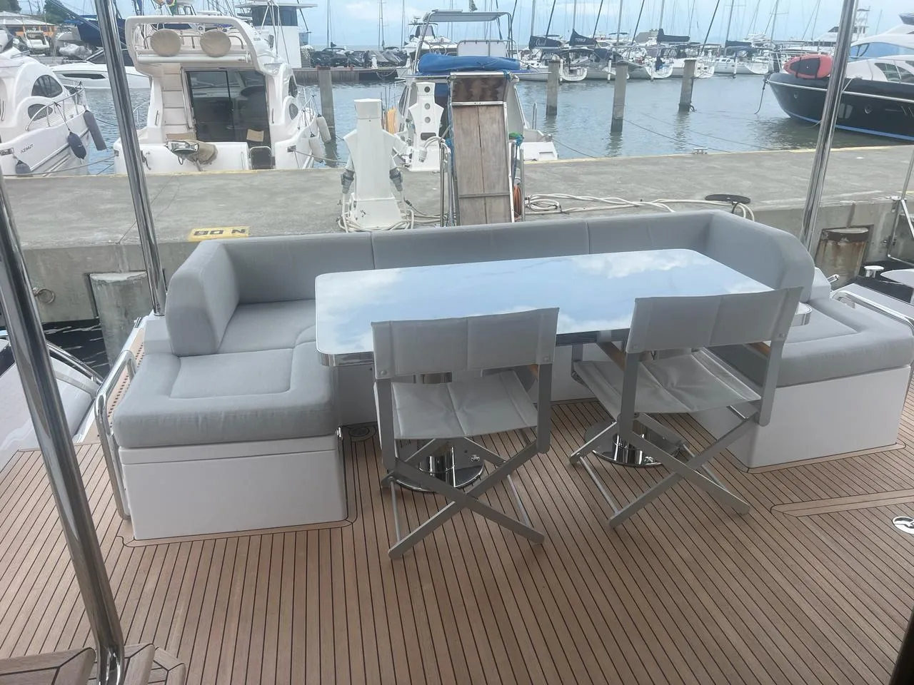 Área gourmet e plataforma de popa: ideais para experiências gastronômicas e acesso facilitado ao mar.