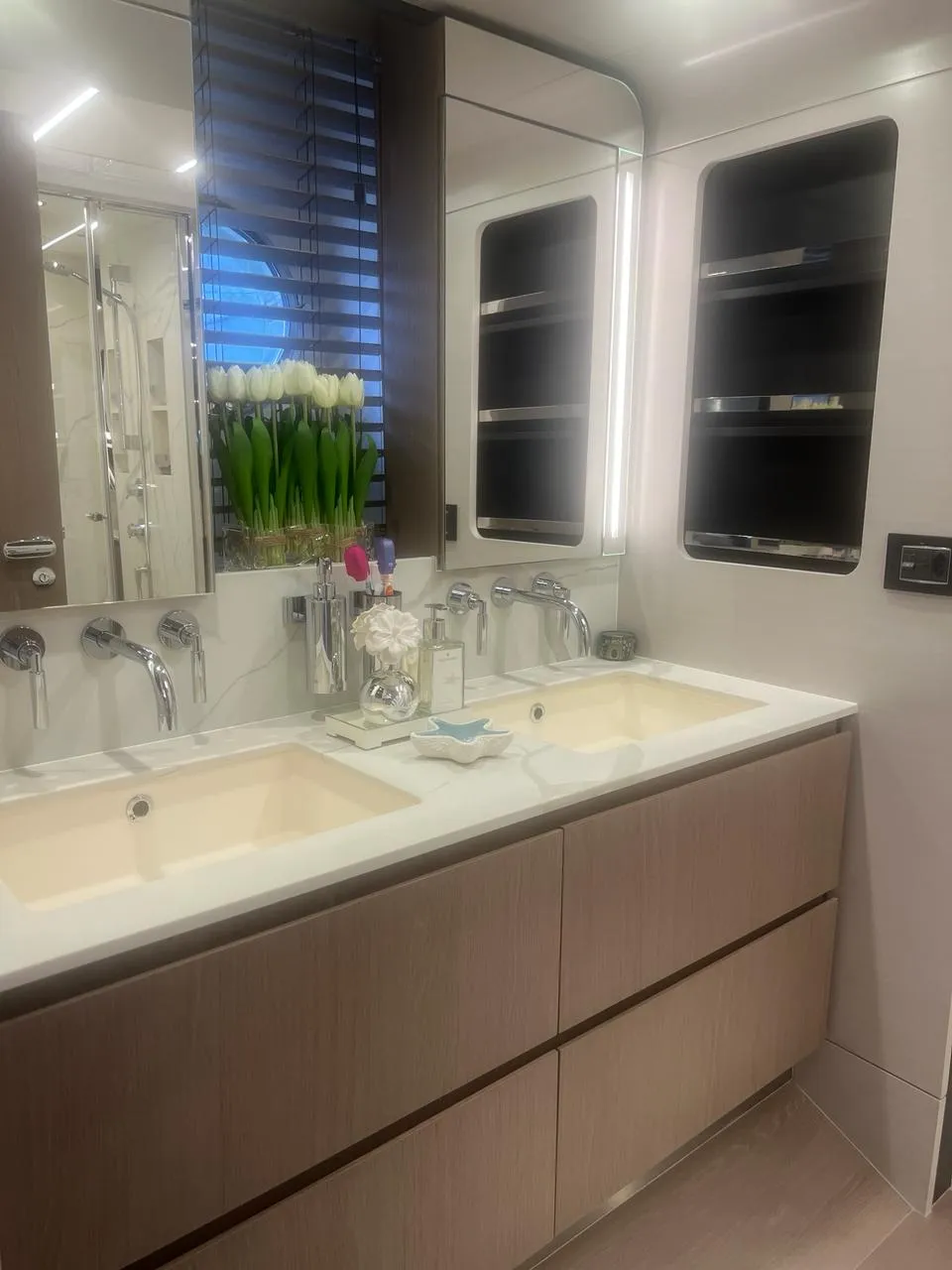 Inspirado no melhor do design náutico italiano, o modelo conta com linhas elegantes e modernas. As janelas panorâmicas proporcionam luminosidade natural e vistas deslumbrantes do mar, enquanto o interior reflete sofisticação em cada detalhe, com materiais nobres e acabamentos de alto padrão.
