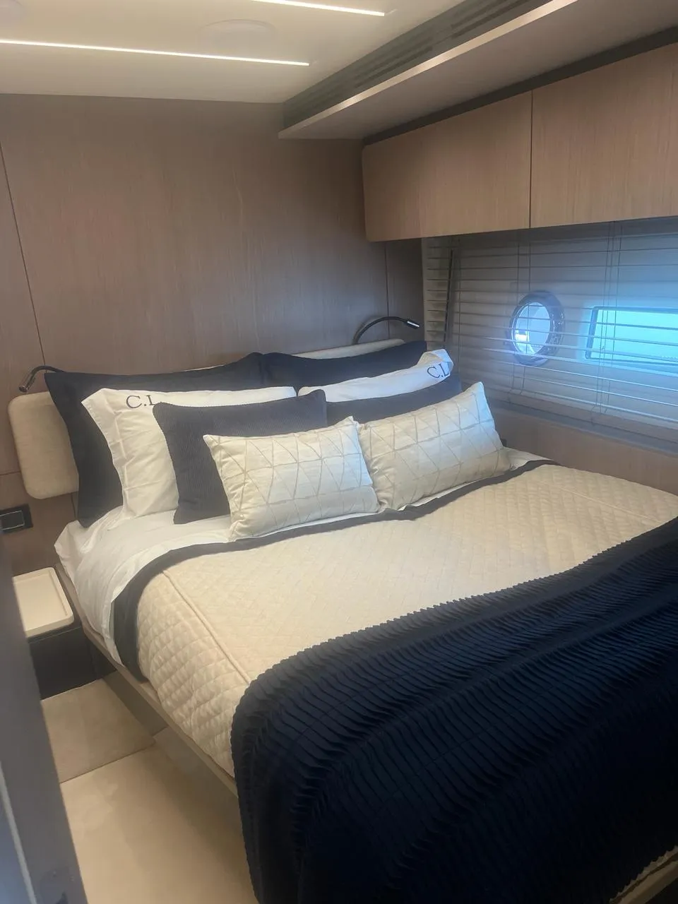 O layout interno conta com 4 camarotes espaçosos e elegantemente decorados, garantindo conforto e privacidade a todos os convidados. Os ambientes são climatizados, funcionais e projetados para longas estadias a bordo.