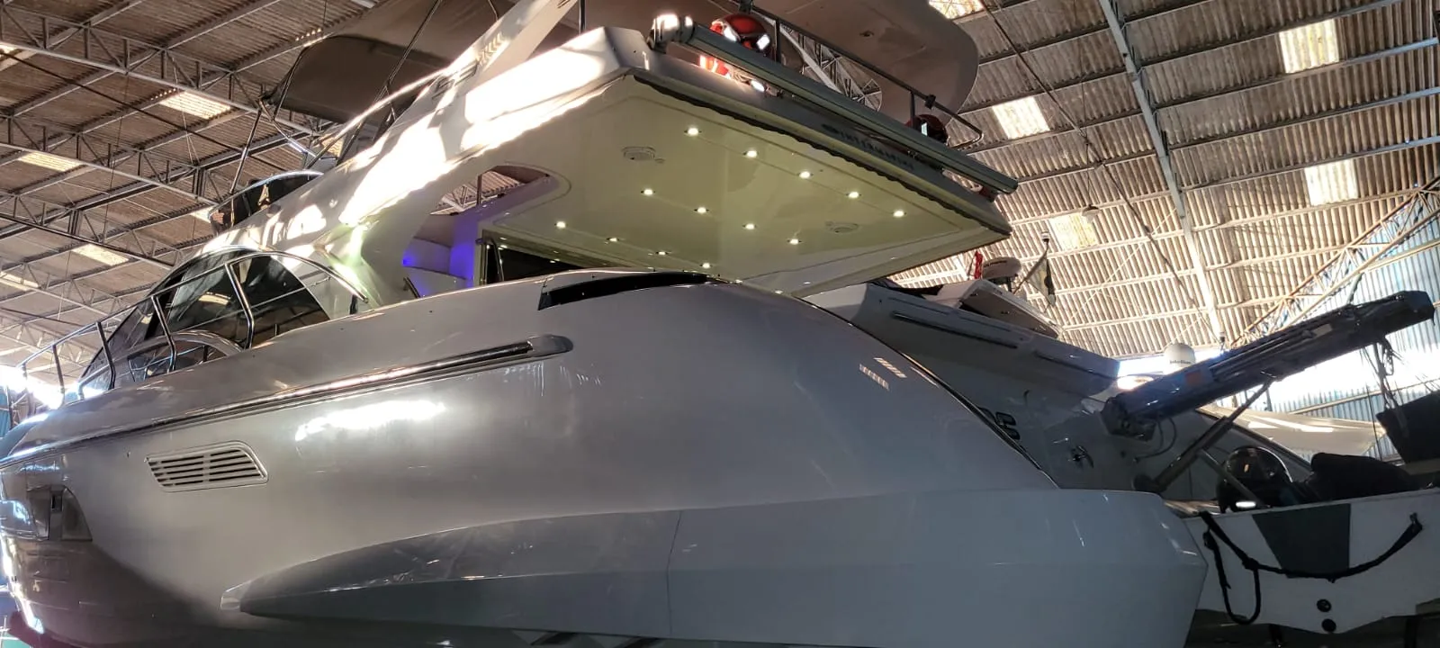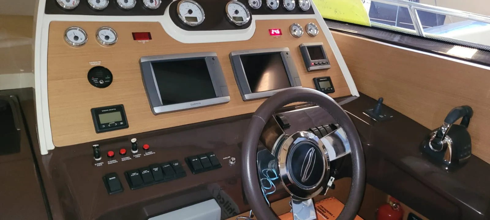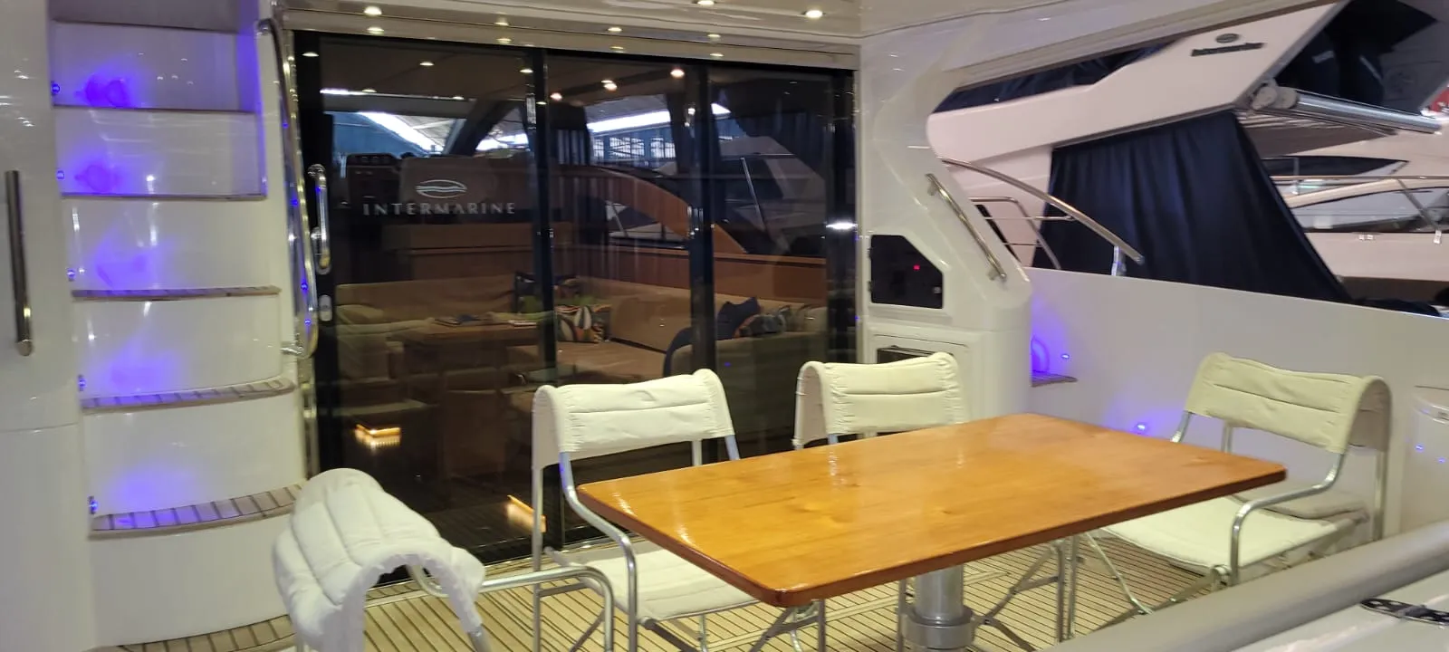 Intermarine 53 – Flybridge (55 pés) — Um iate arrojado e moderno, o Intermarine 53 oferece alto desempenho, layout inteligente e elegante, e acabamento refinado. Seja para cruzeiros familiares ou eventos sociais no mar, esse modelo entrega conforto, estilo e performance em uma experiência náutica premium.