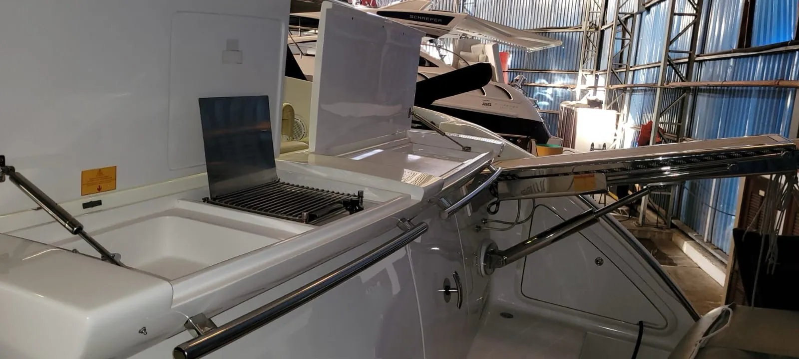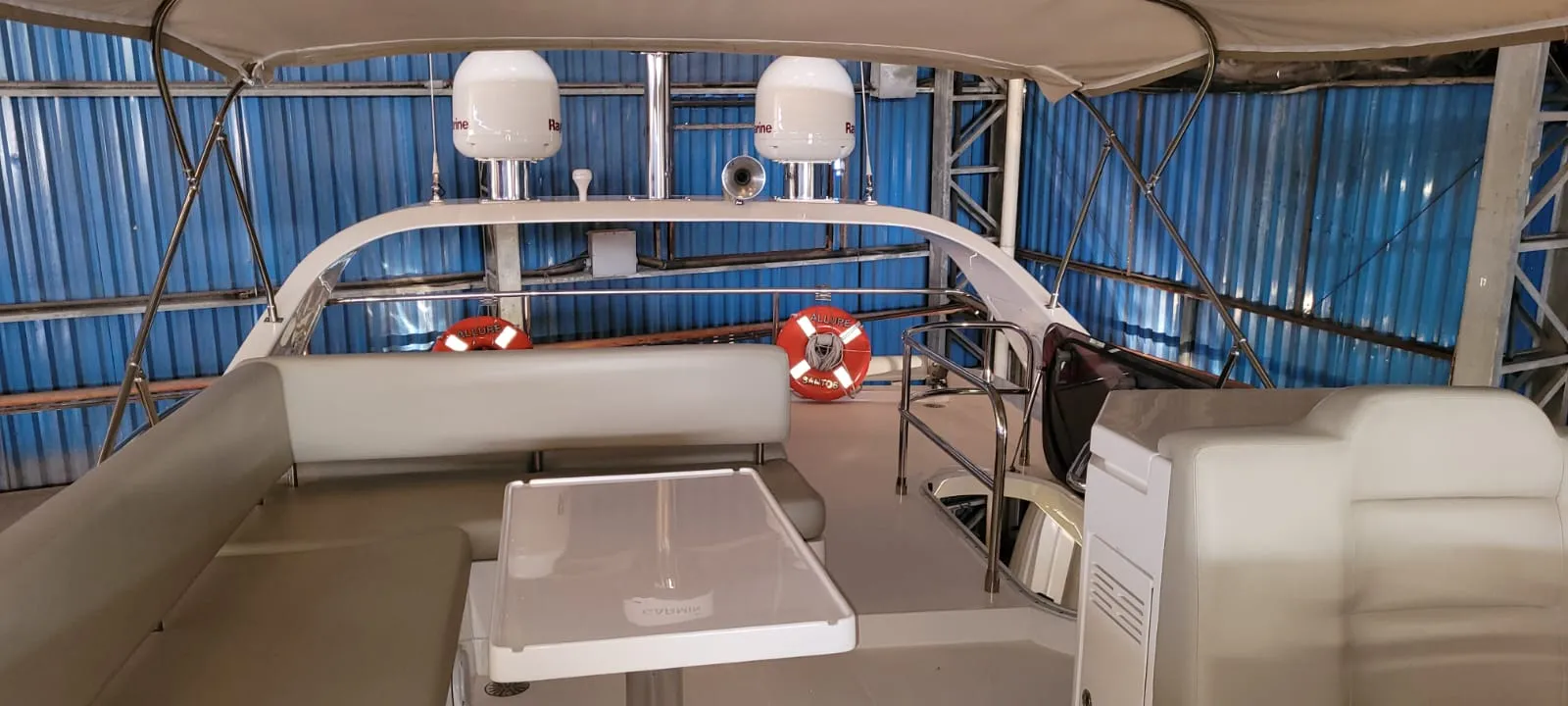 Plataforma de popa ampla e deck generoso, permitindo convivência e relaxamento externo